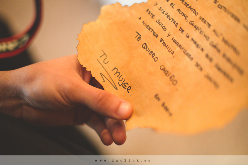 Nos recibe Diego, el novio, nos invita a pasar. Toda la familia está expectante porque es el primer miembro de la familia que se casa. Tamara, su hermana , le hace entrega de un mensaje escrito por su novia María. Diego lo lee, antes de encontrarse en el altar, muy emocionado.
