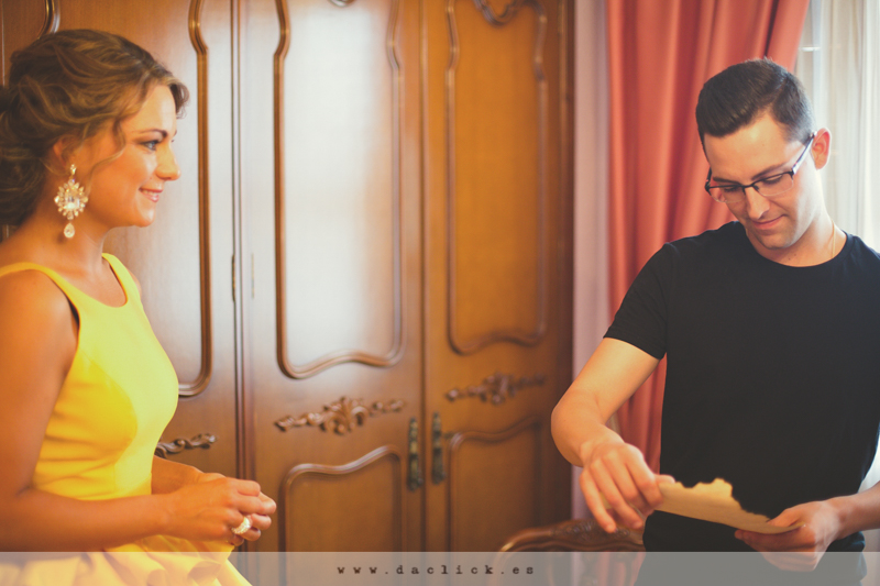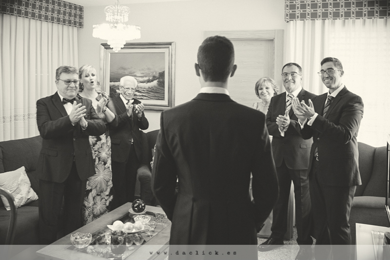 Nos vamos a casa de María , también en Alicante. El tiempo está raro, a ratos caen cuatro gotas contadas. En casa de María también están muy expectantes por todo lo que va a suceder durante el día, también es la primera que se casa. María es una de las novias más jóvenes que hemos tenido, veintitrés hermosas primaveras.