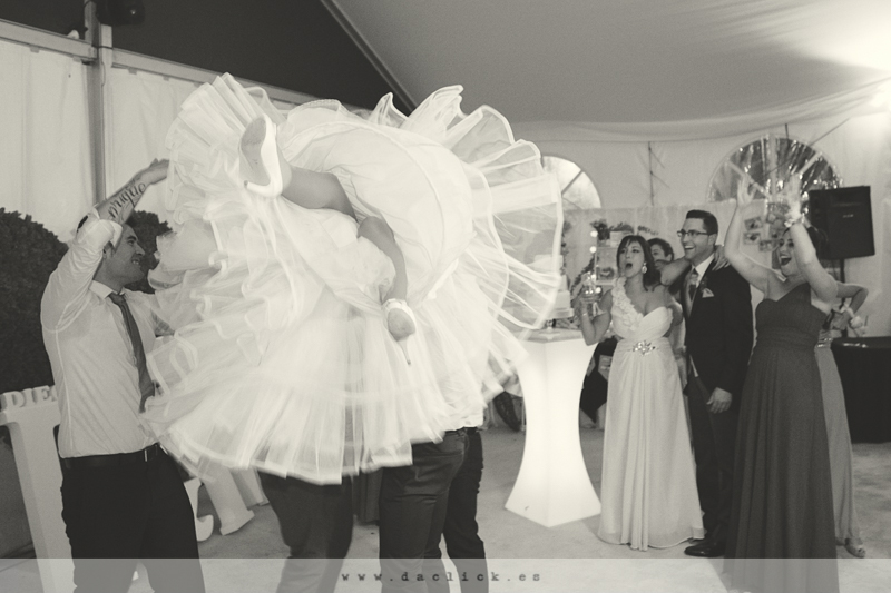 La novia llegada en carruaje de caballos , en el interior de la iglesia un dúo rociero. El banquete y la fiesta fue spectacular en la carpa de la Finca Jardinade que protegió a los invitados de la lluvia.