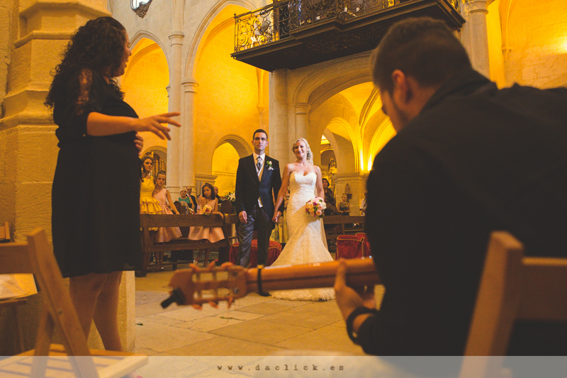 La entrada a la iglesia. Este es el momento tan esperado del que Diego nos habla en este vídeo. La ceremonia en la iglesia fue solemne y con grandes momentos que protagonizaron Tamara y Aurora, las hermanas de los novios, con unas emotivas lecturas. El duo de guitarra y voz que intervino también nos puso los pelos de punta.