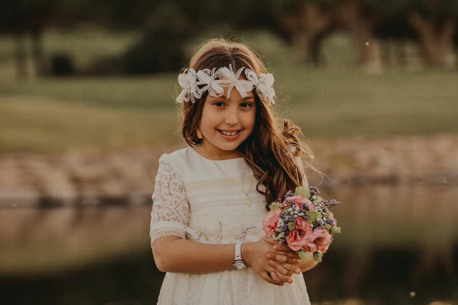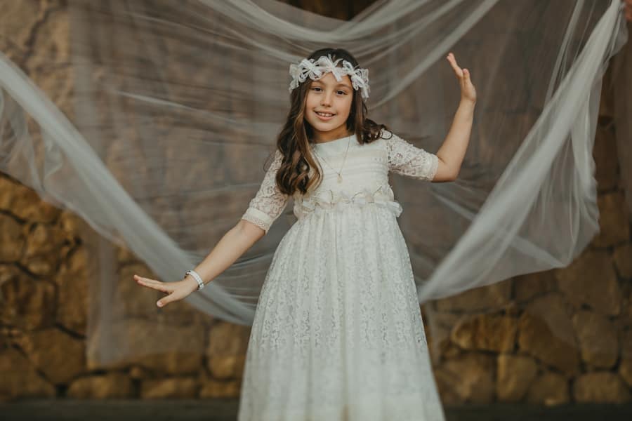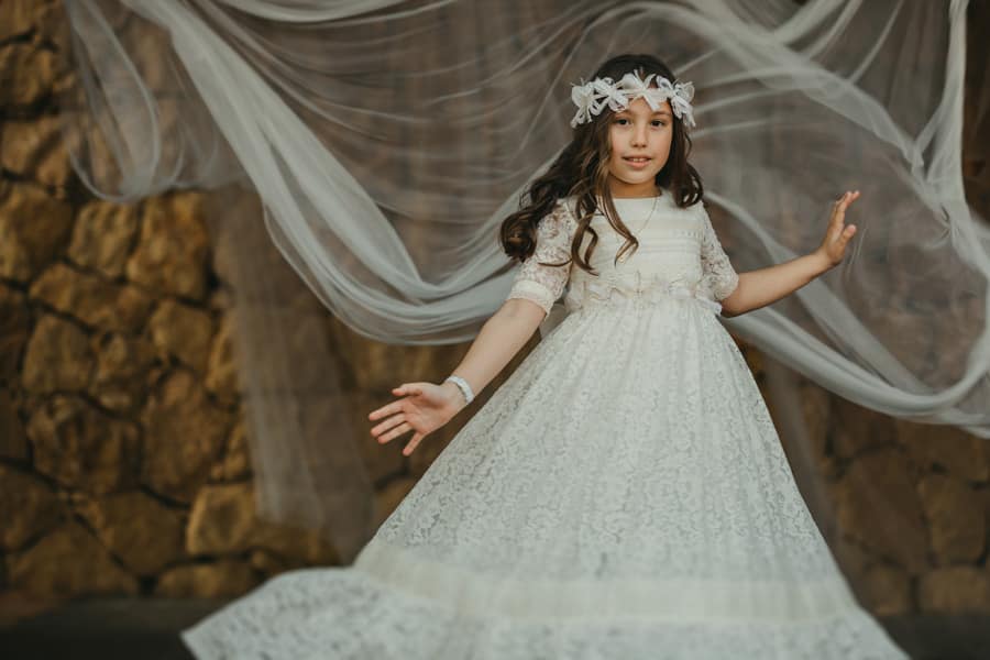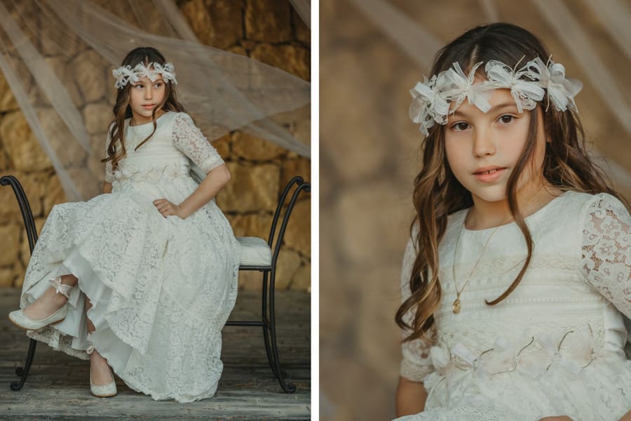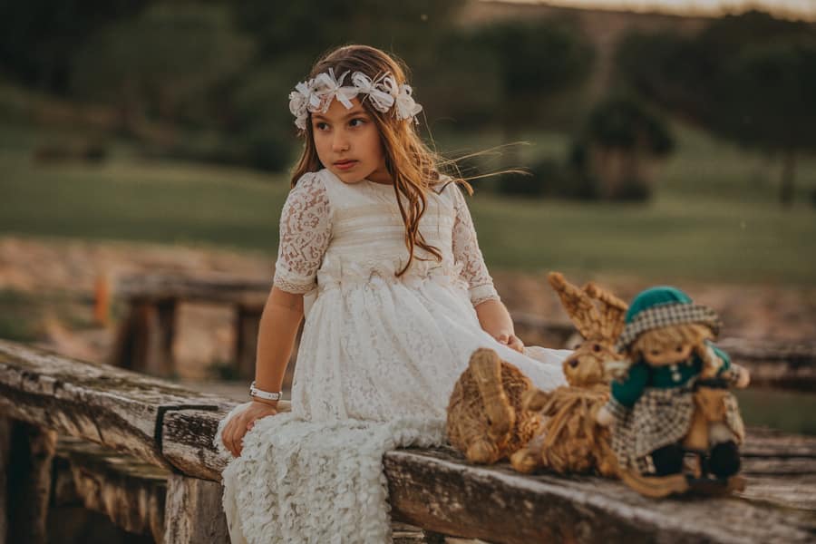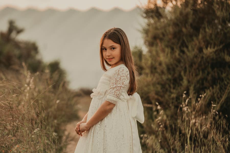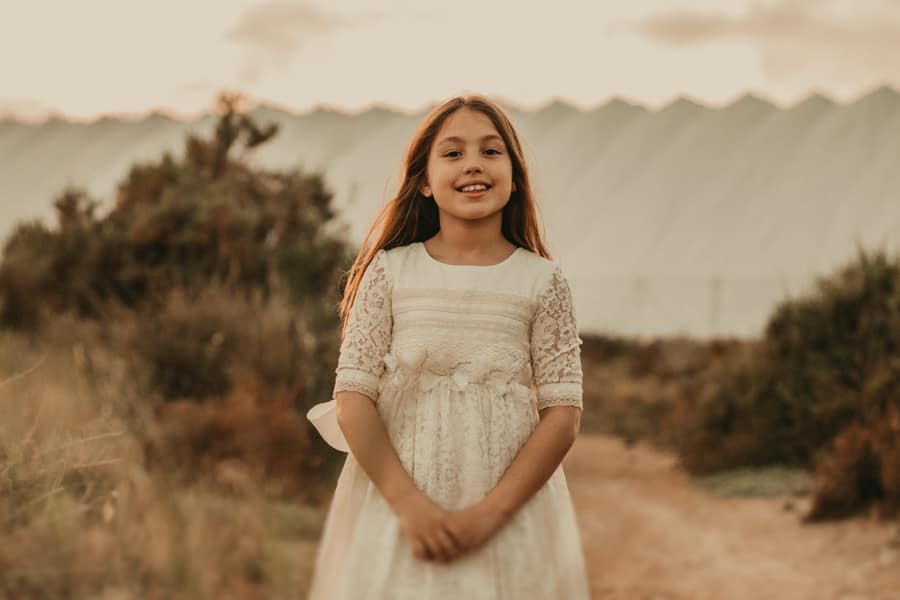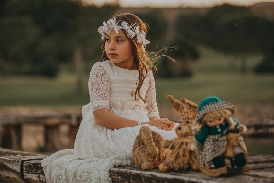 Es por esto que en exteriores, combinamos un par de looks: vestido de comunión y con ropa de paseo. La finalidad de estas sesiones es captar la esencia de los niños, como si de un juego se tratase además de sacarles muy guapos.