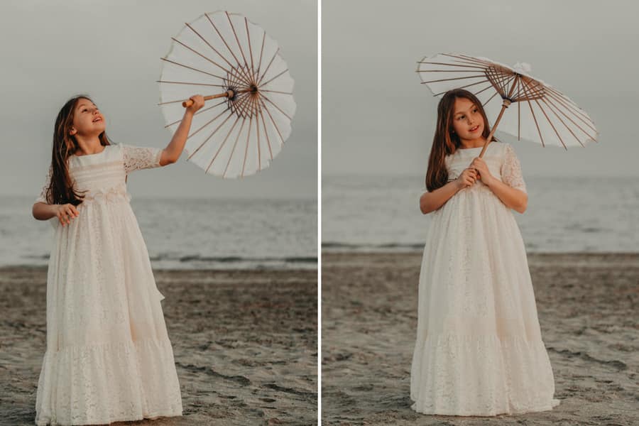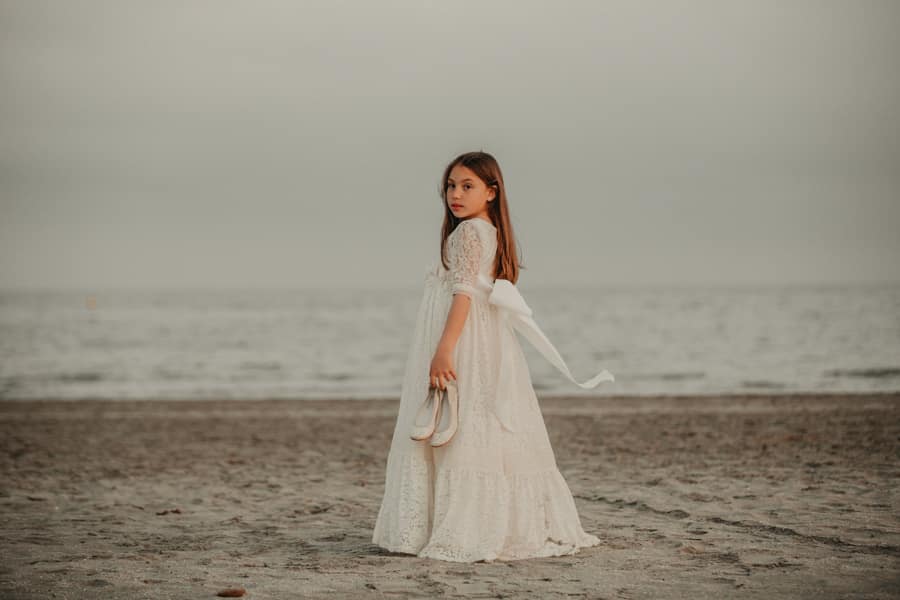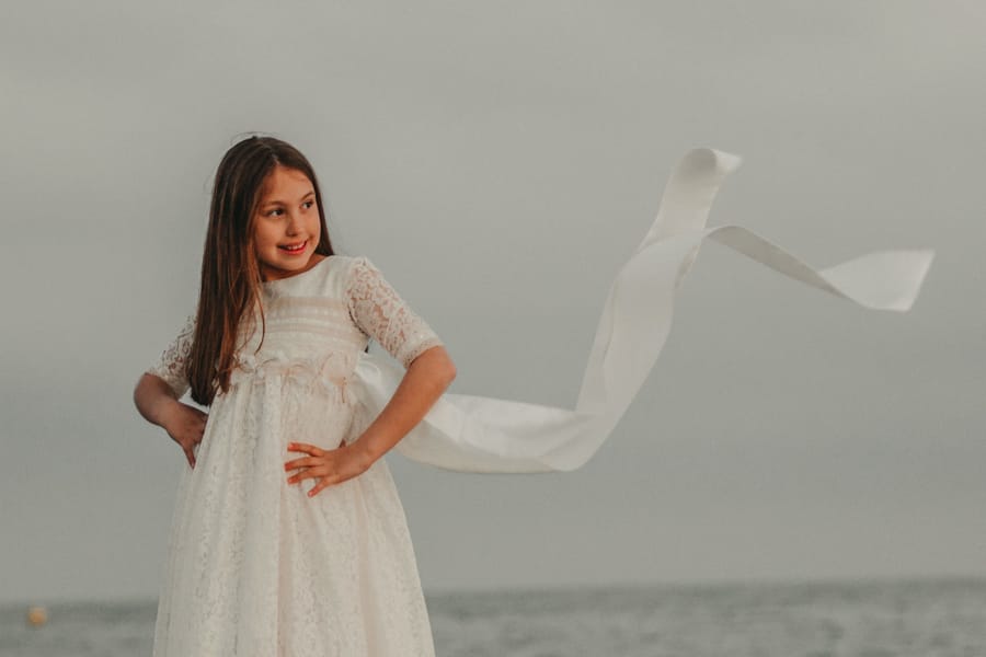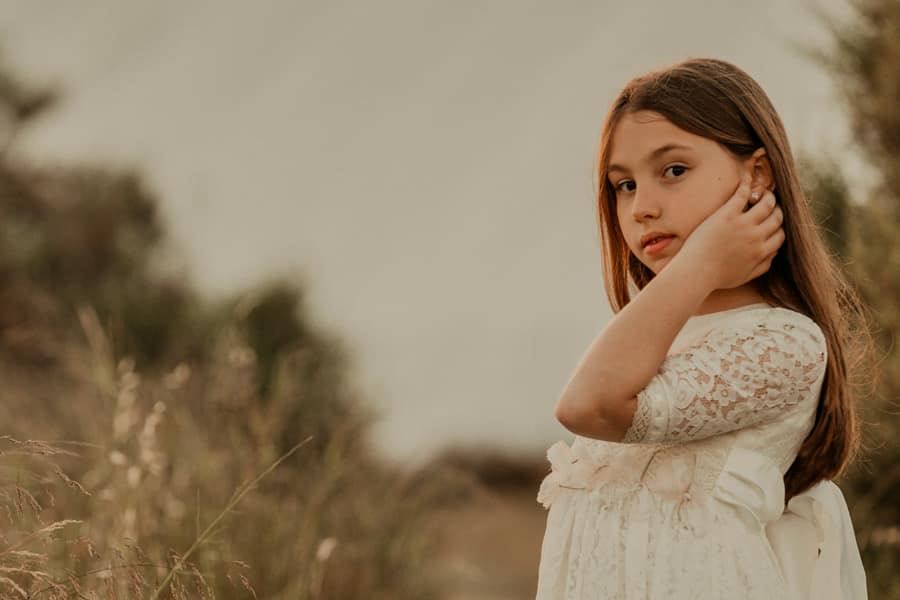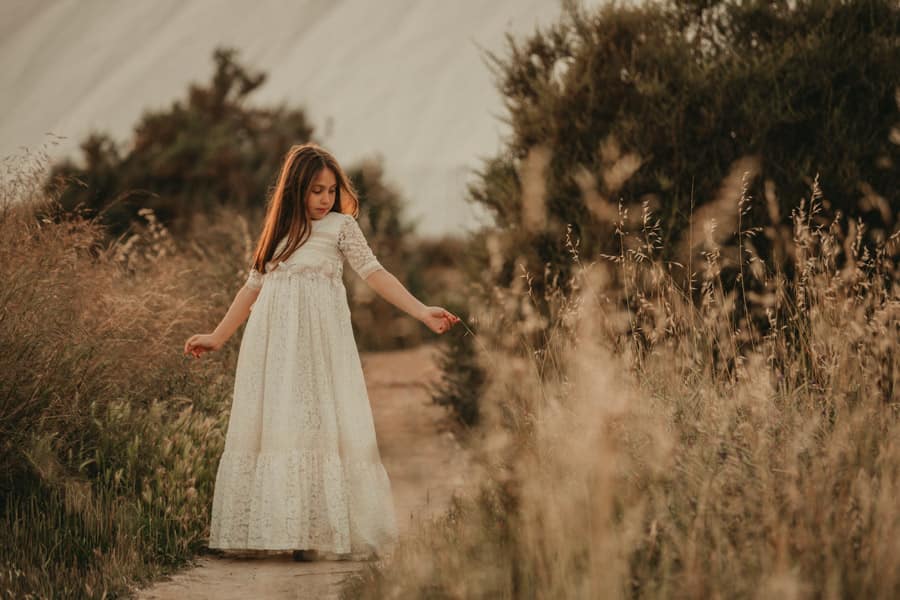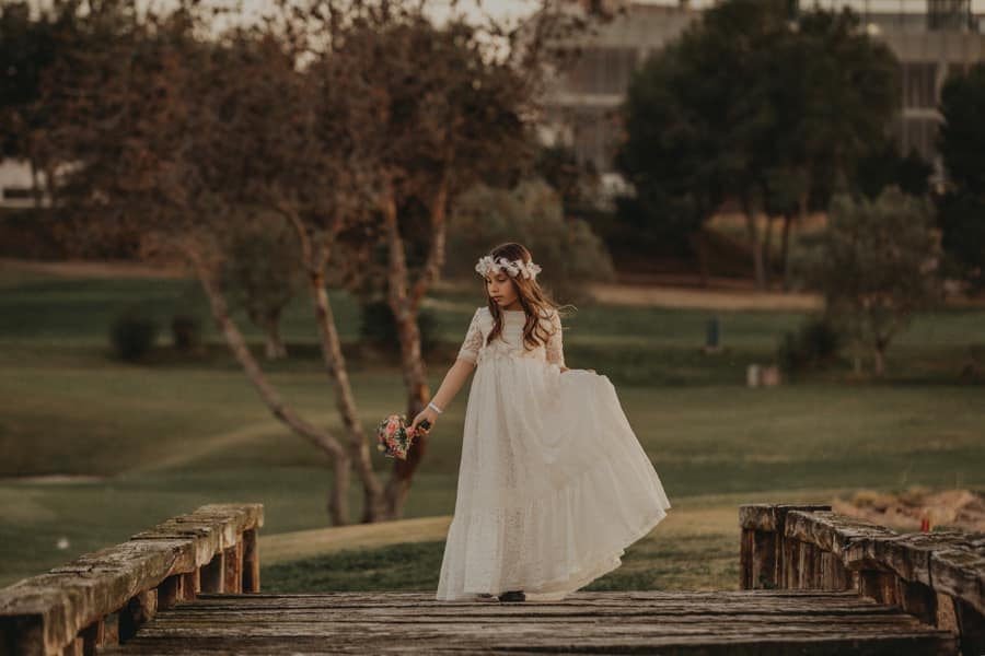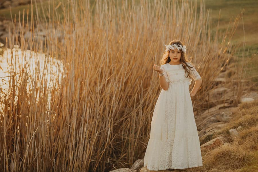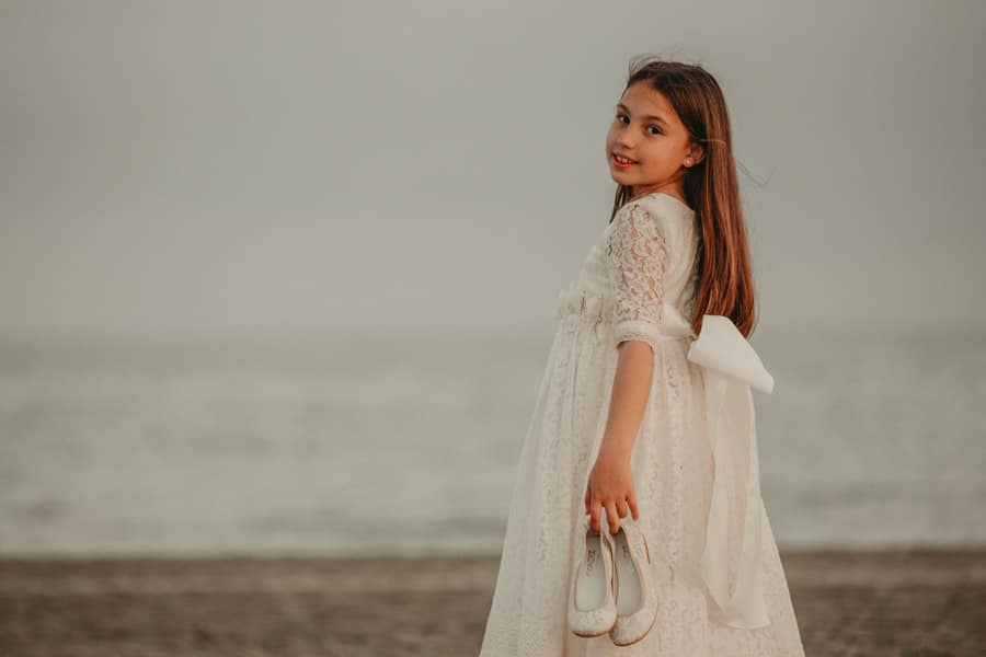 Es por esto que en exteriores, combinamos un par de looks: vestido de comunión y con ropa de paseo. La finalidad de estas sesiones es captar la esencia de los niños, como si de un juego se tratase además de sacarles muy guapos.