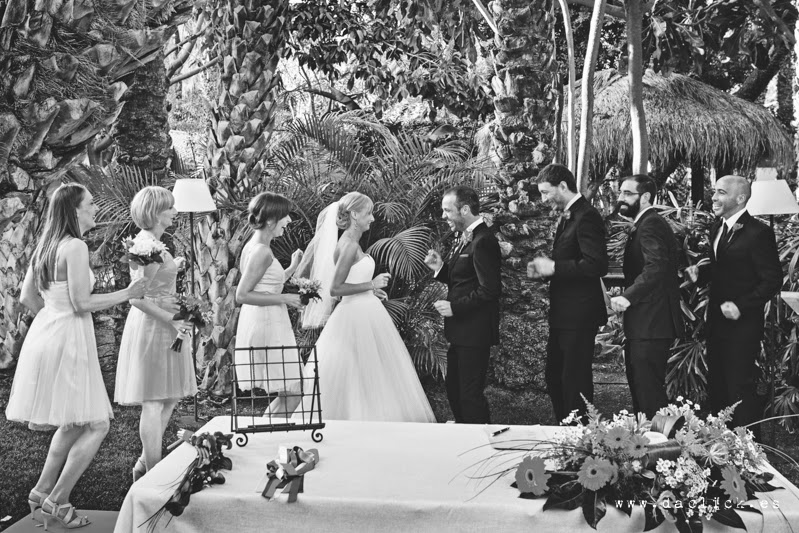 La boda , en el Jardín Zen de las instalaciones del Hotel Huerto del Cural, se celebró en español y en inglés , la encargada de oficiar la ceremonia fué Eva Reyes Ceremonias. Las flores y decoración magnífica de Ángela Florista.
