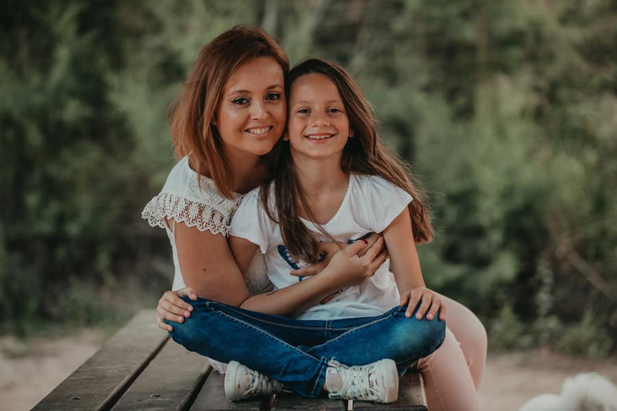 Blanca tiene un reportaje de comunión en exterior , con la familia y con su mascota , en un momento clave en la vida de los niños como es el inicio de la adolescencia.