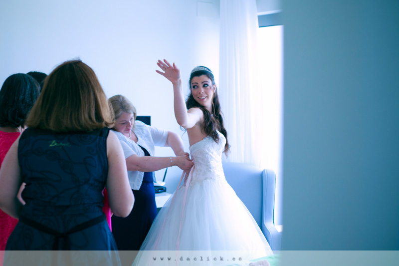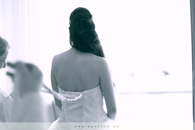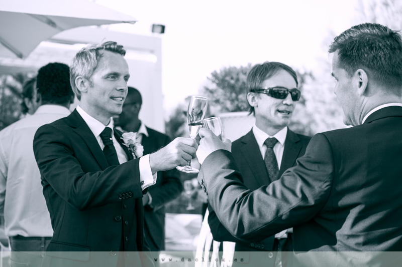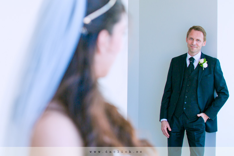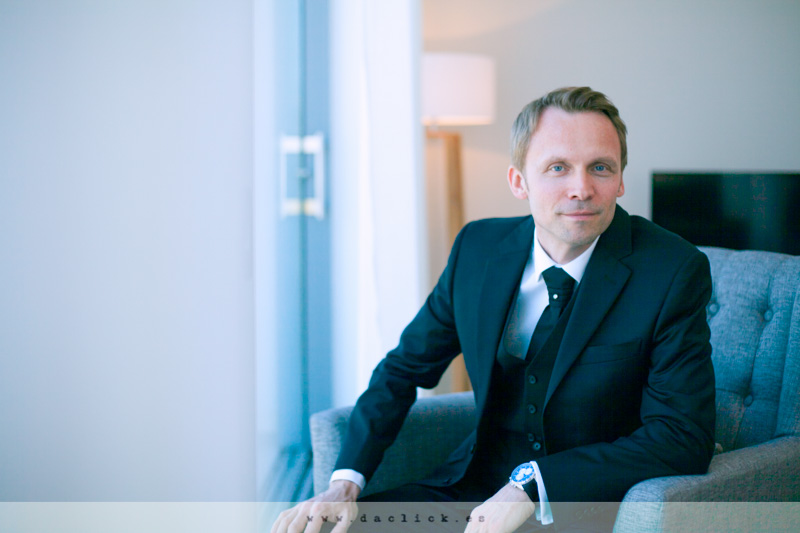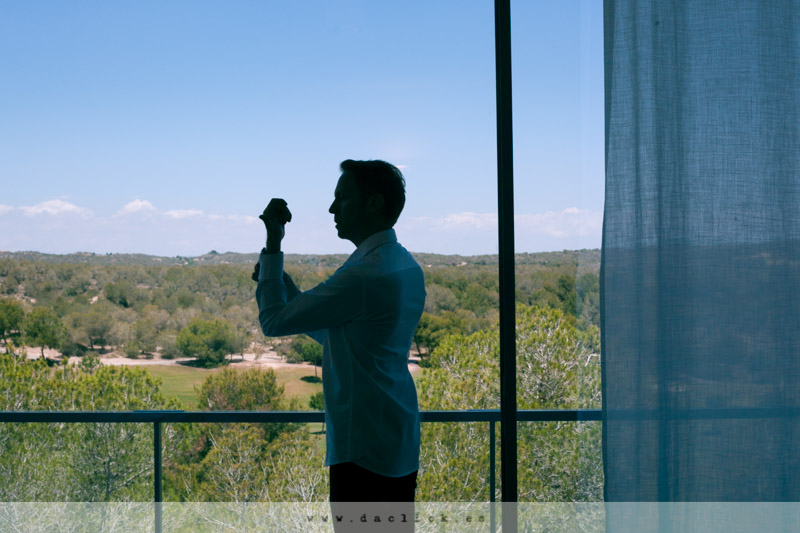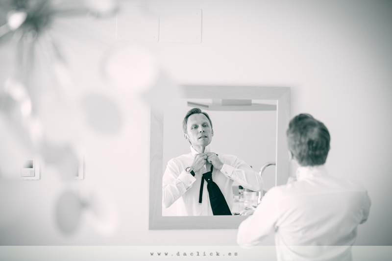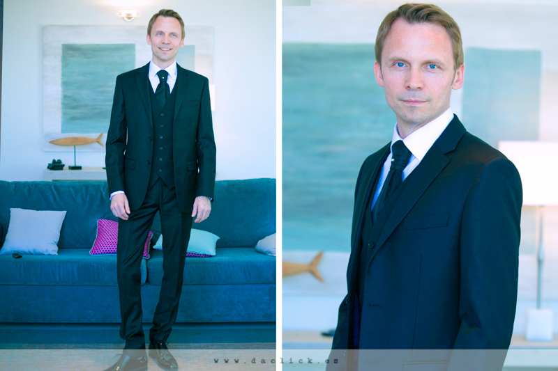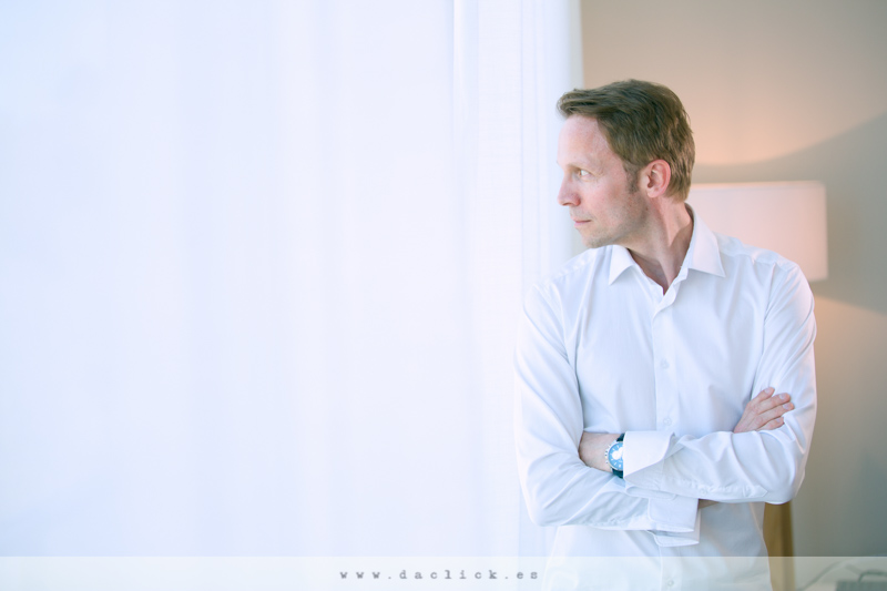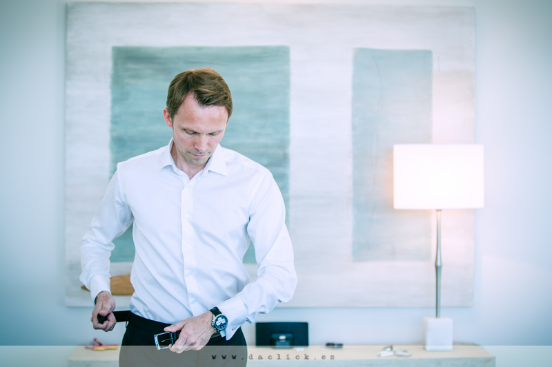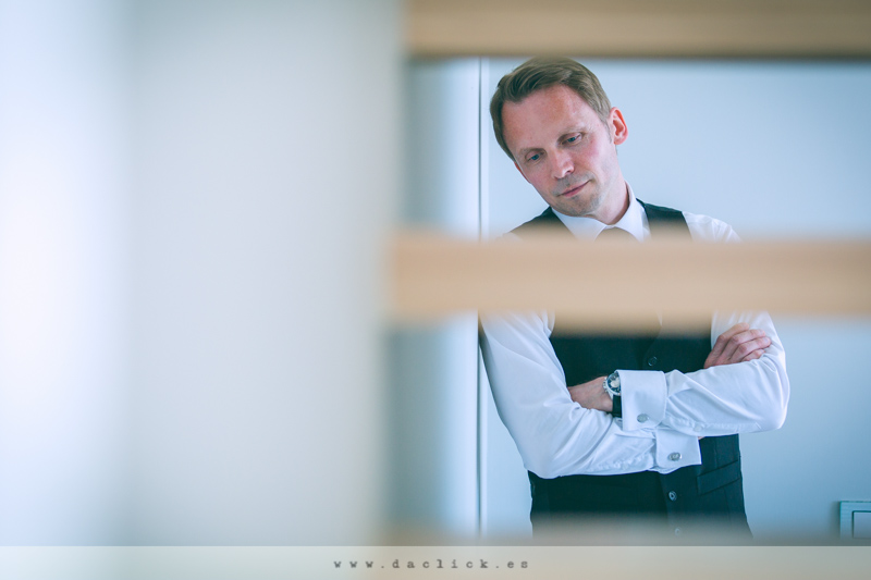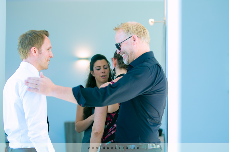 Empezamos con los preparativos de Erik y Silvia, los dos en la misma casa. Nos recibe Erik , Silvia aún no ha llegado, también las novias francesas llegan tarde, está en la peluquería. Erik no habla español y nos comunicamos con él en inglés.