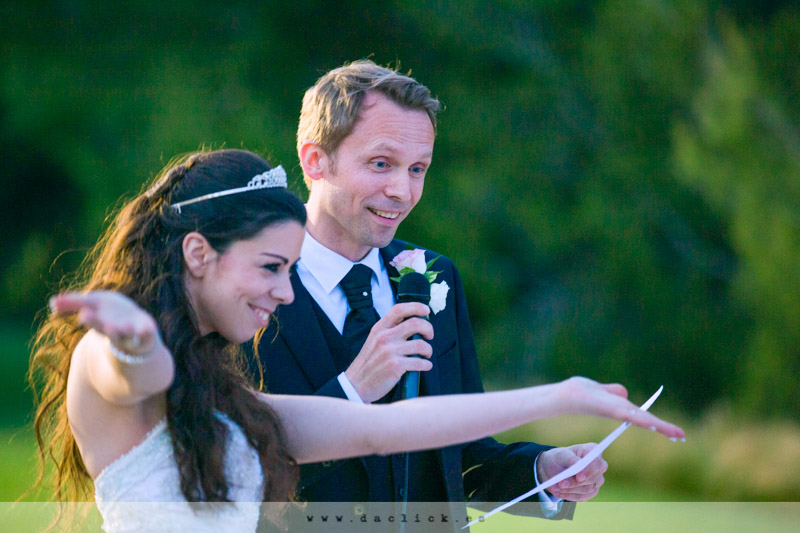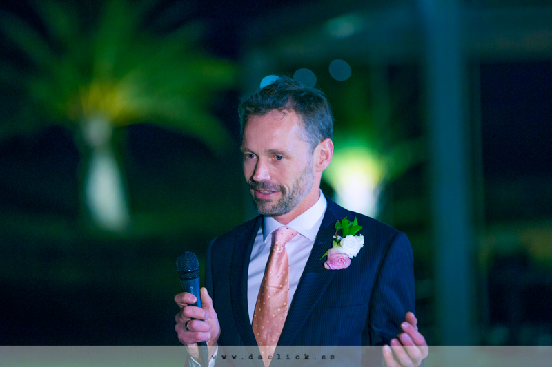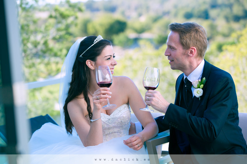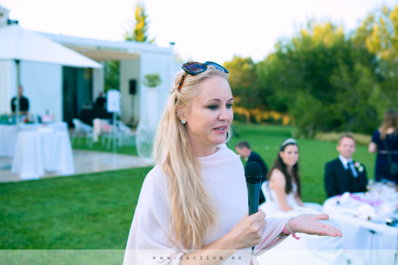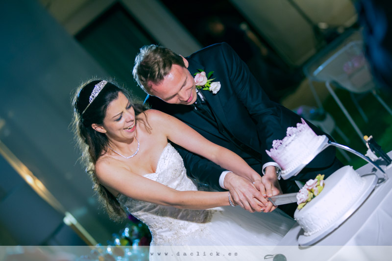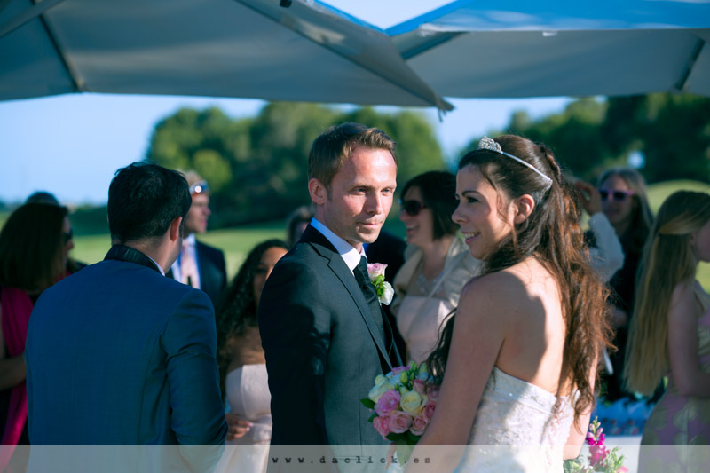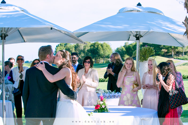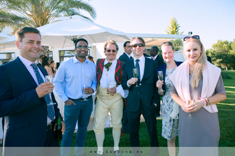 Los preparativos se realizaron en Las Colinas Golf Club en San Miguel de Salinas, en una impresionante casa de diseño con vistas a un campo de golf . Sobre el césped del green se celebró el banquete de bodas con invitados llegados Francia, Noruega y España.