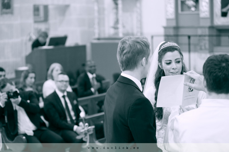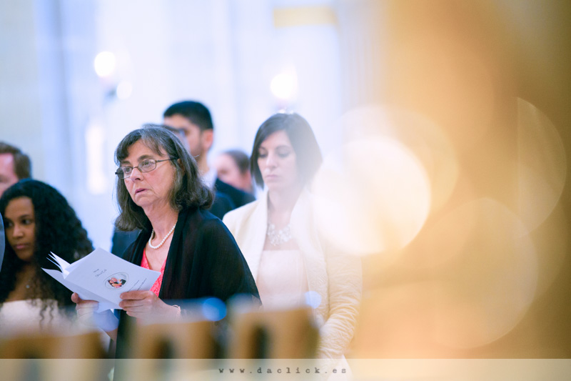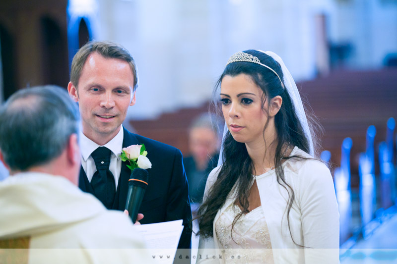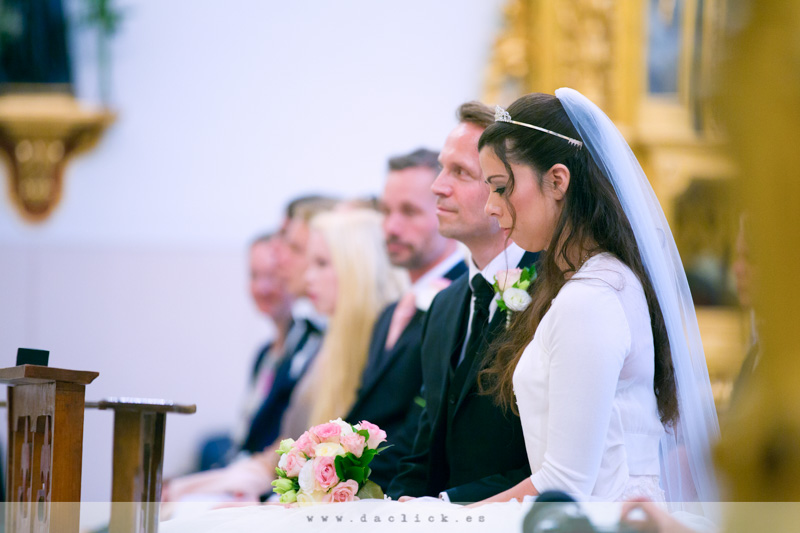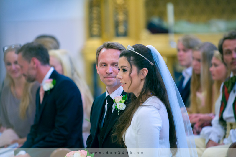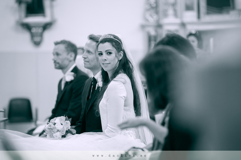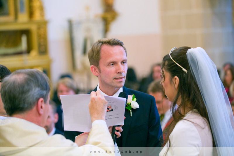Ya en la iglesia todo preparado para la ceremonia, que se desarrollará en inglés, salvo alguna lectura en francés por parte de los familiares de Silvia, que es francesa. Todos los invitados tendrán la posibilidad de seguir la ceremonia gracias a unas octavillas que encontrarán en los asientos.
