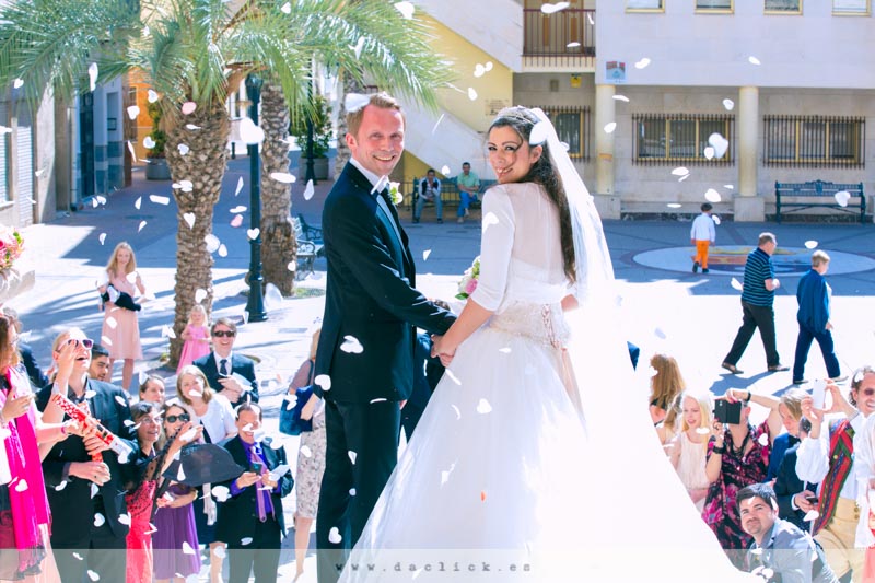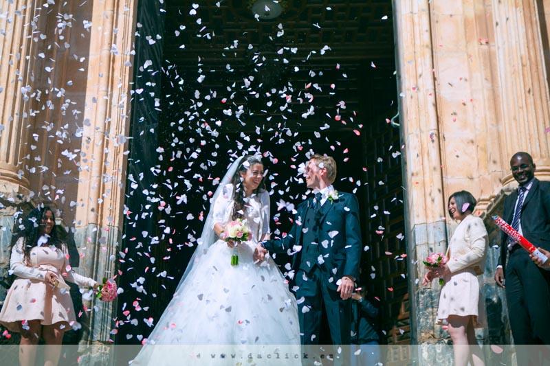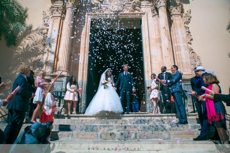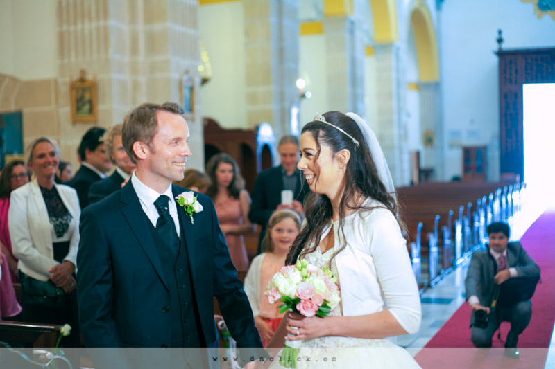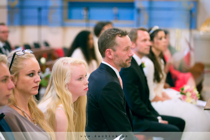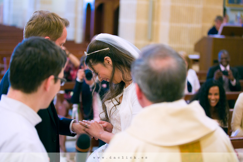 La misa , el ritual del casamiento, hasta la puesta de anillos con atasco en el dedo , es idéntico al español. El protocolo solo varía, y en este caso en concreto, en la salida de los novios de la iglesia pues primero salieron ellos, seguidos de sus damas de honor, y mientras esperan en la puerta , el resto de invitados. Una vez has salido todo el mundo, los novios se disponen a darse un baño de pétalos y arroz.